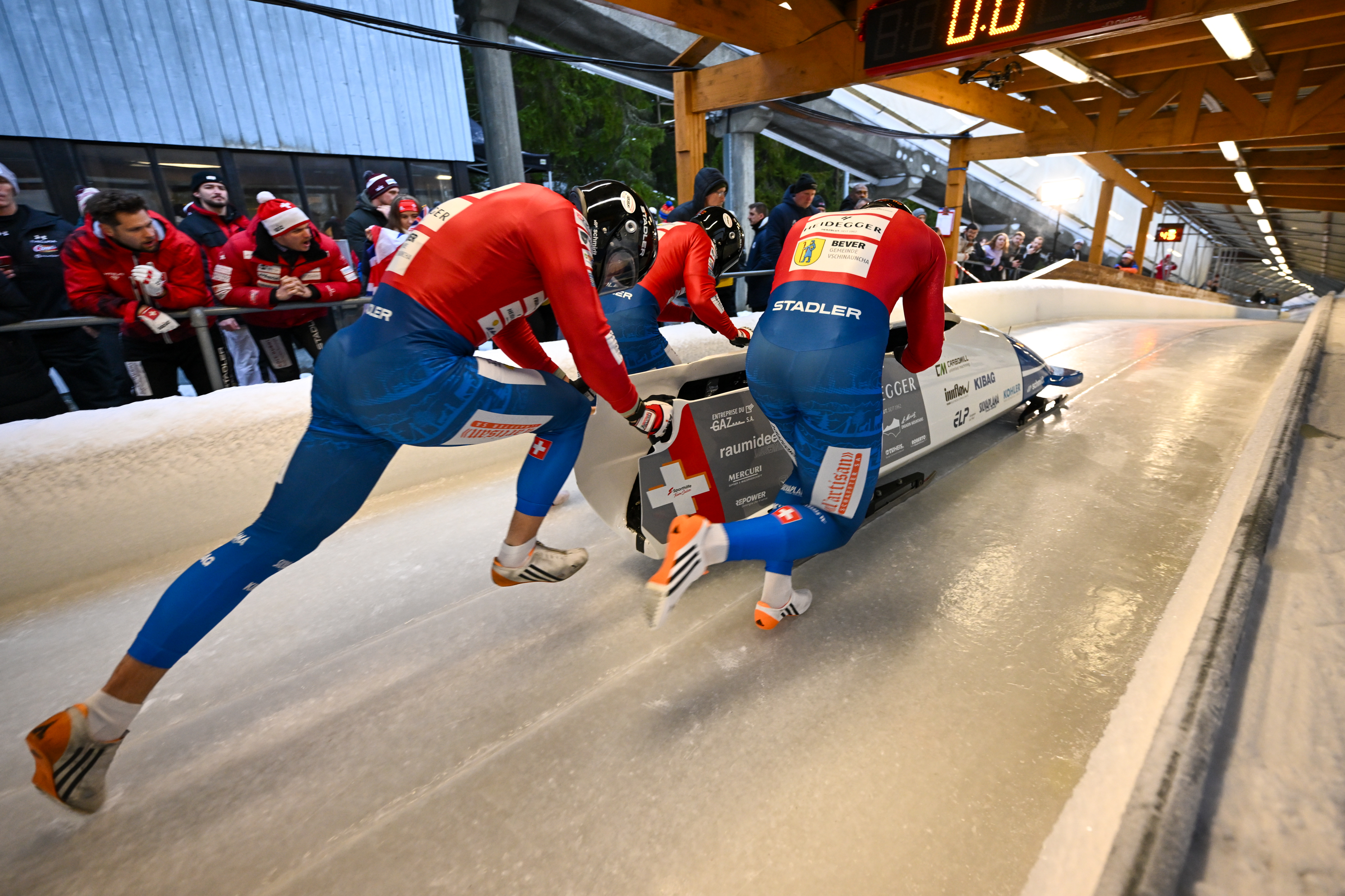 Bei den drei Teams wurden im zweiten Viererbob-Rennen am Sonntagnachmittag einige Anpassungen in den Mannschaften vorgenommen. Diese brachten jedoch nicht den gewünschten Effekt. Die Startzeiten fielen insgesamt schlechter aus als am Vortag und im sehr dicht besetzten Feld führten bereits kleine Fehler zu deutlichen Platzverlusten. Michael Vogt klassierte sich auf Rang acht, Cedric Follador auf Rang 15 und Timo Rohner auf Rang 20.